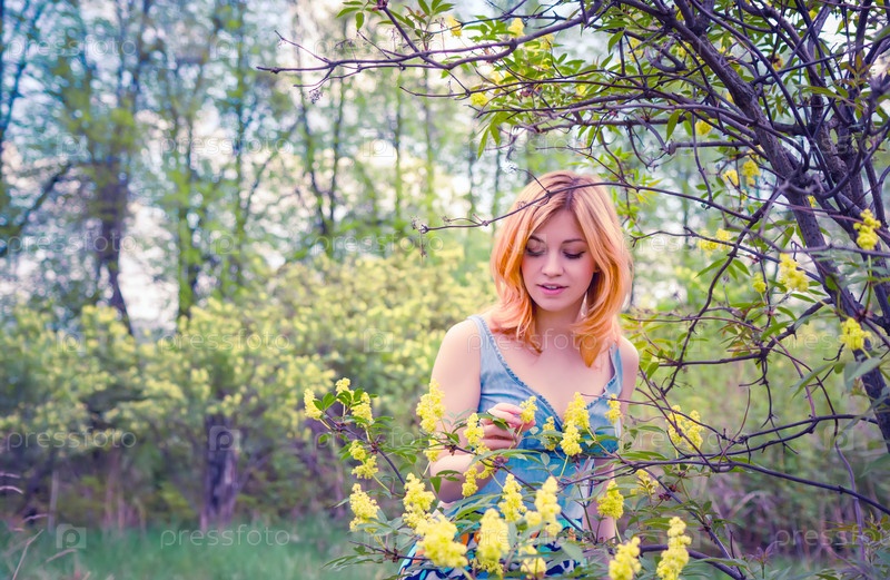 Молодая женщина в саду весной