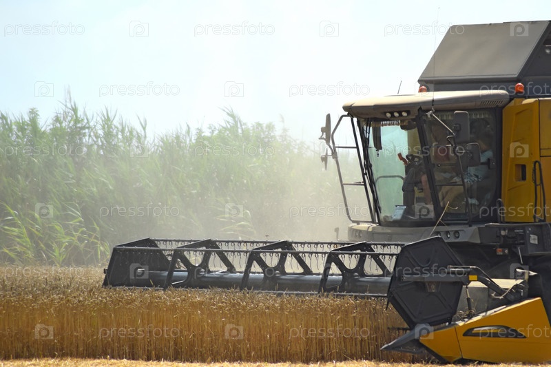 Комбайн собирает урожай пшеницы