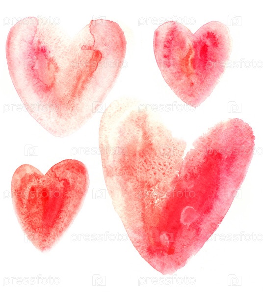 Красные сердца акварель