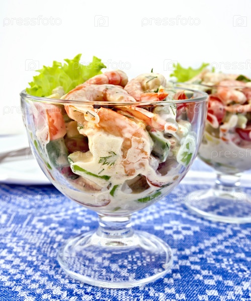 Салат с креветками и помидорами