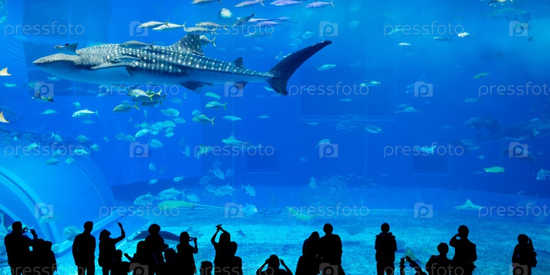 Силуэты людей в Океанариуме