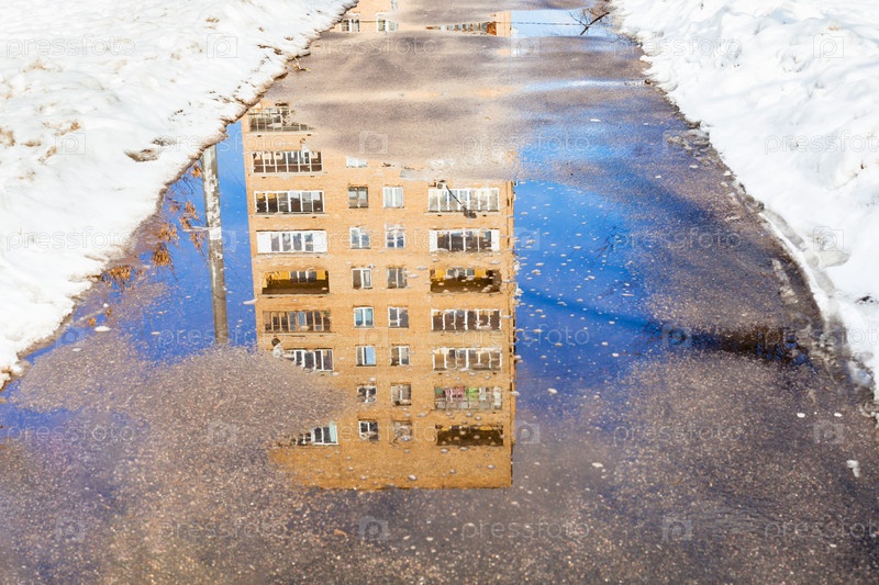 Отражение дома в луже