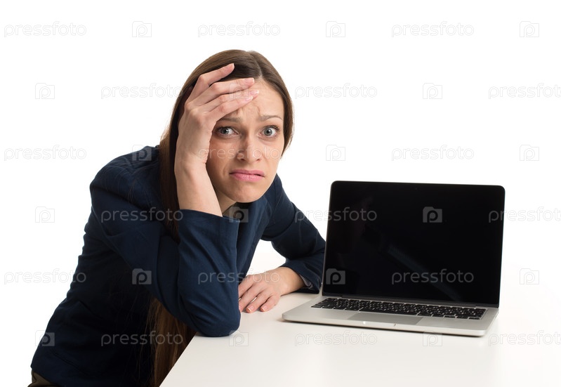Усталая бизнес-леди с ноутбуком