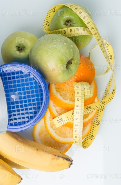 Синий шейкер и фрукты