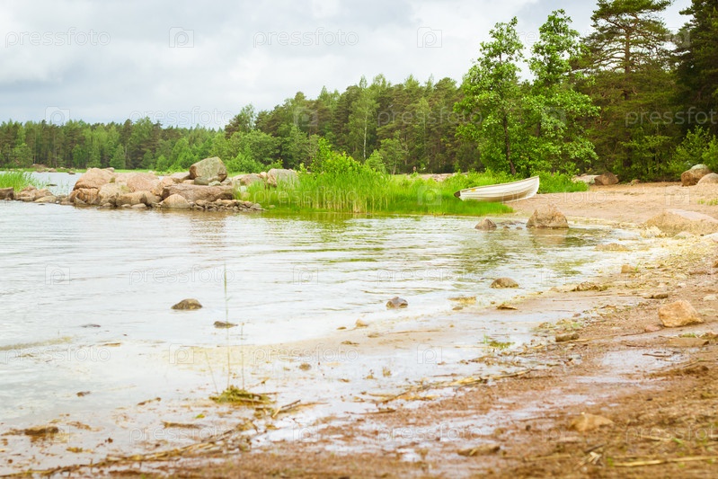 Белая лодка на песчаном берегу