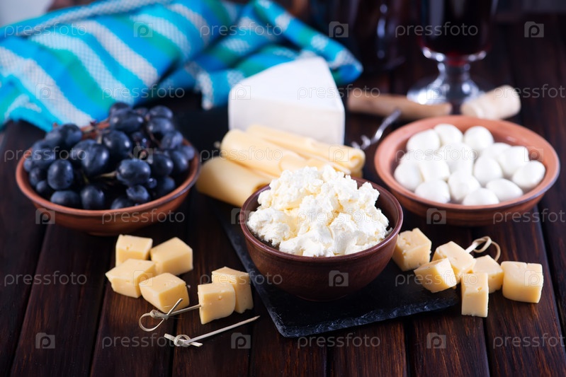 Творог, сыр и виноград