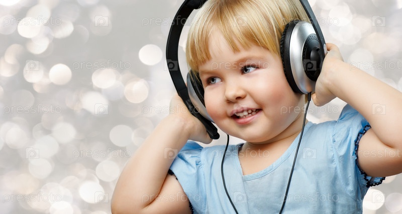 Маленькая девочка слушает музыку