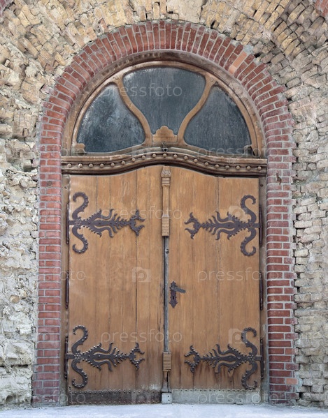 Старые деревянные ворота средневекового дома