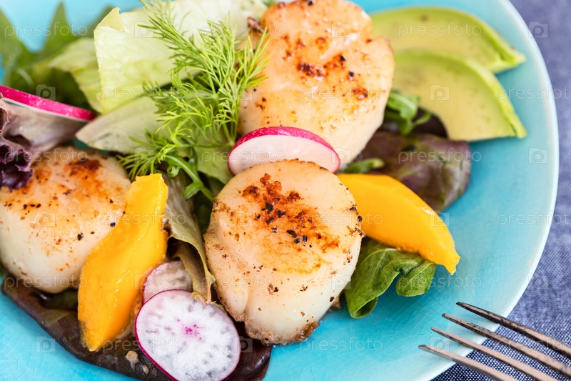 Обжаренные гребешки и салат с манго
