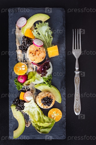 Обжаренные гребешки и салат с манго