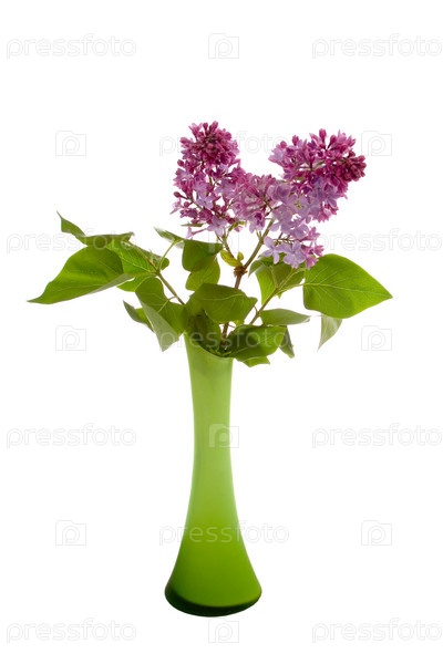 Букет сирени в вазе, изолированный на белом фоне