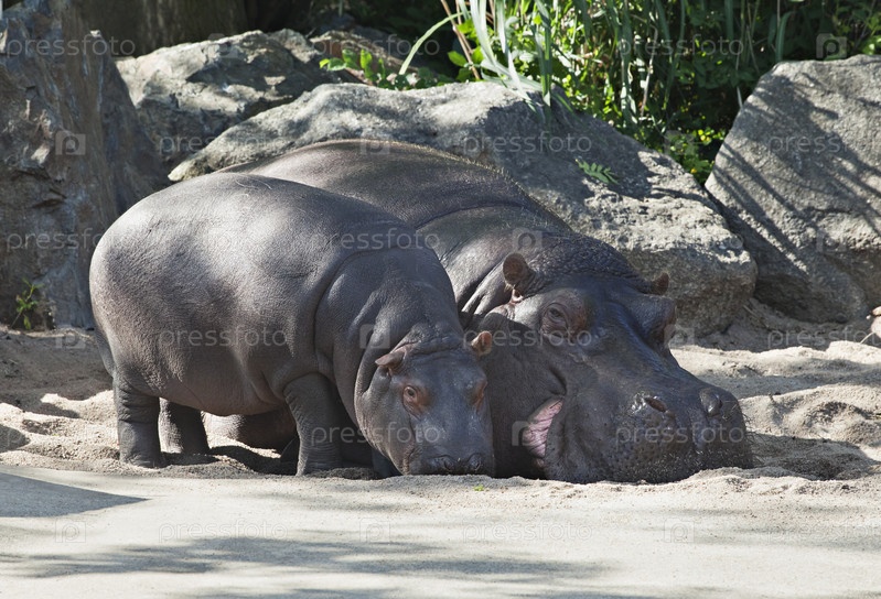 Бегемоты в зоопарке