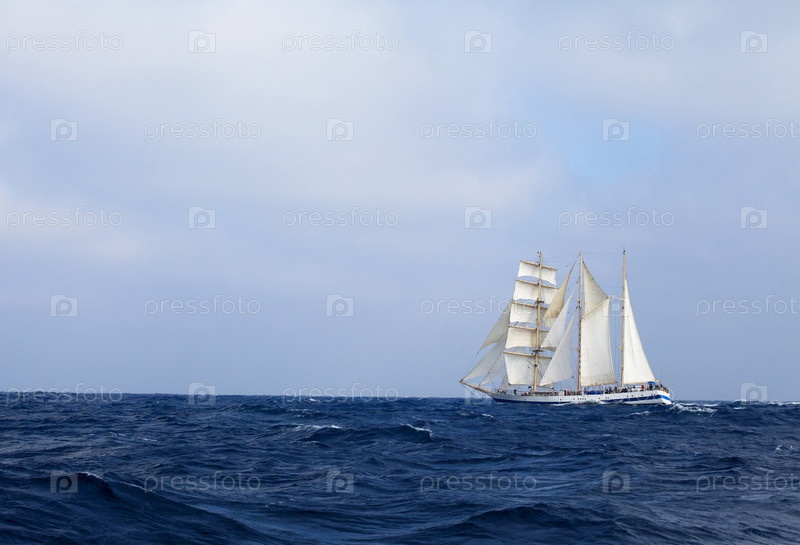 Баркентина с белым паруса