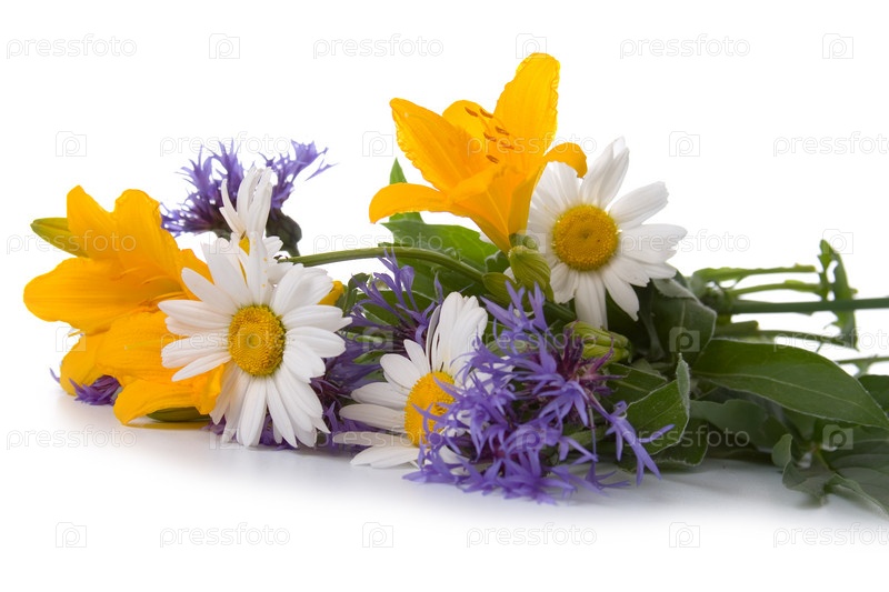 Букет красивых цветов на белом фоне