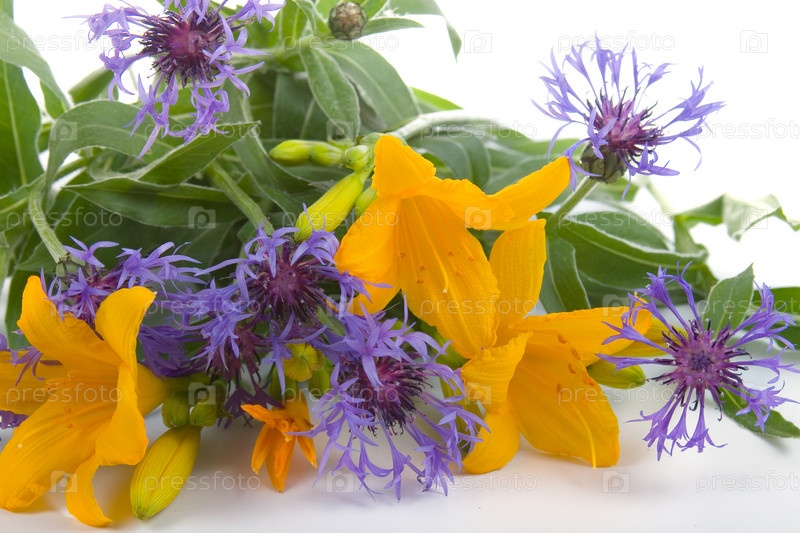 Букет красивых цветов на белом фоне