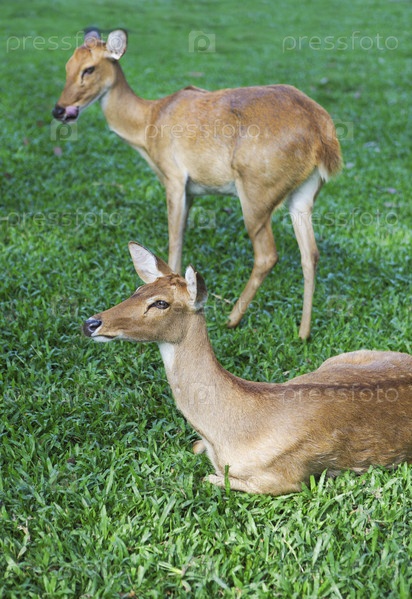 Косули на зеленой траве