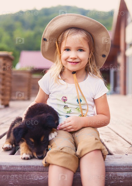 Милая маленькая девочка со щенком