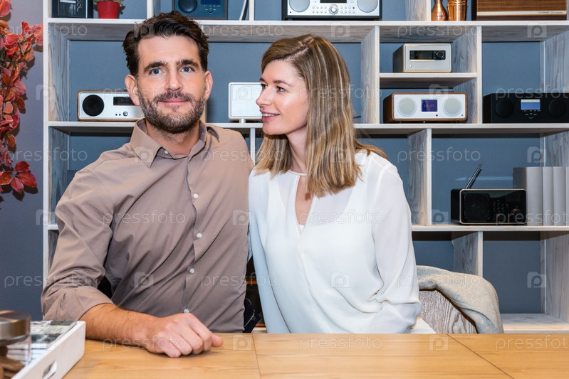 Пара у прилавка в магазине электроники