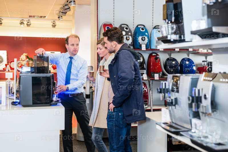 Продавец, показывая чайник