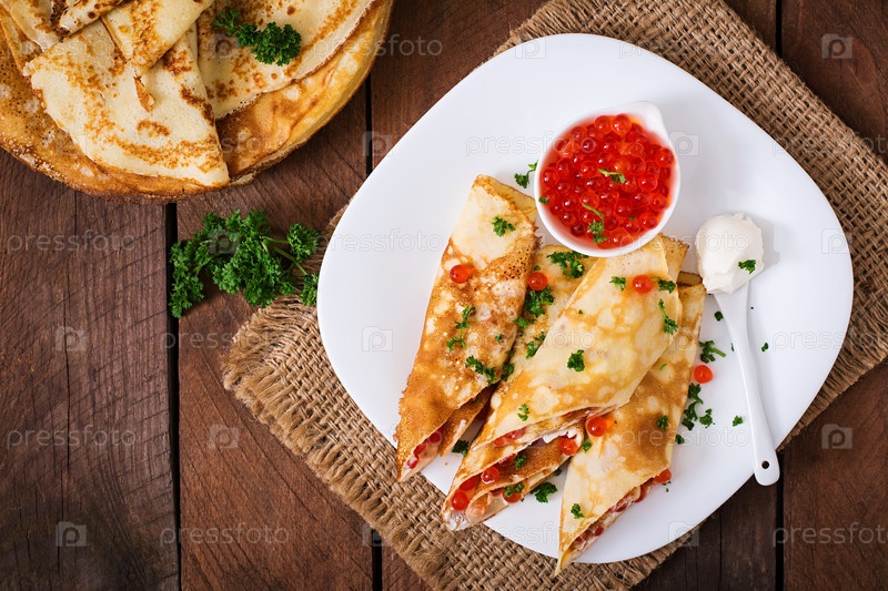 Блины с красной икрой и сливочным сыром