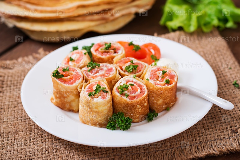 Аппетитные блинчики с лососем