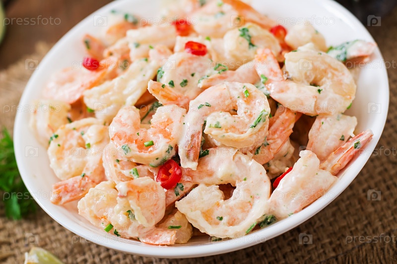 Креветки в сливочно-чесночном соусе