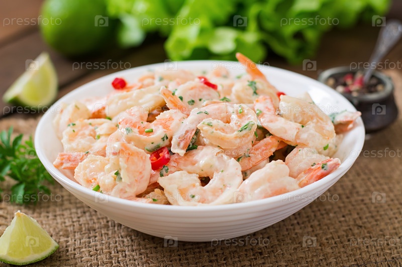 Креветки в сливочно-чесночном соусе