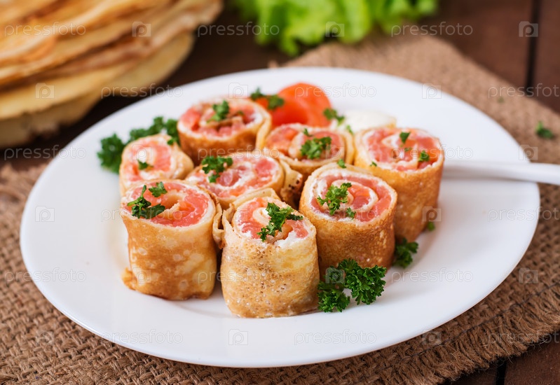 Аппетитные блинчики с лососем