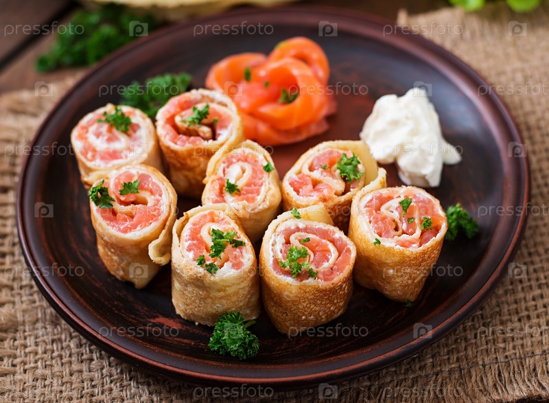 Аппетитные блинчики с лососем