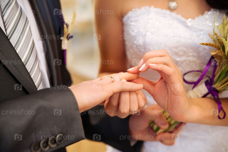 Невеста надевает обручальное кольцо