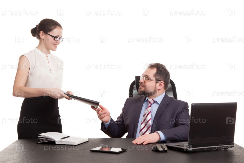 Секретарша протягивает боссу документы