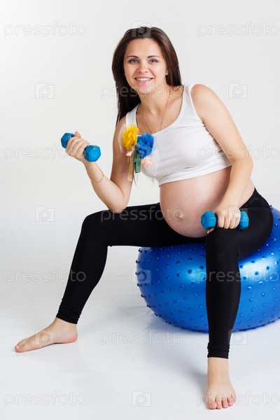 Беременная девушка выполняет упражнения