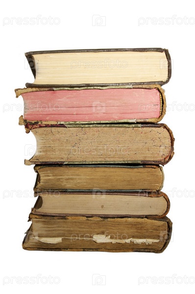 Старые книги на белом фоне крупным планом