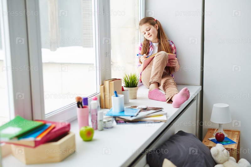Девочка сидит на подоконнике