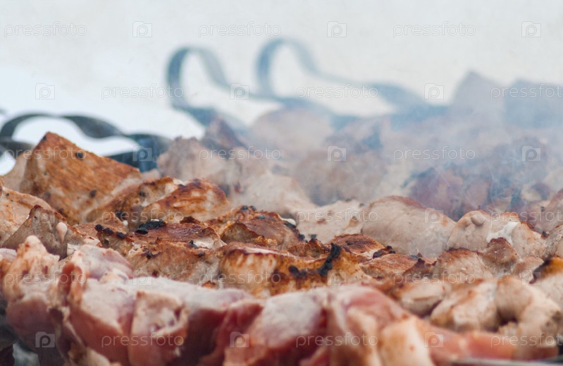 Приготовление шашлыка (мясо на углях) в жаровне