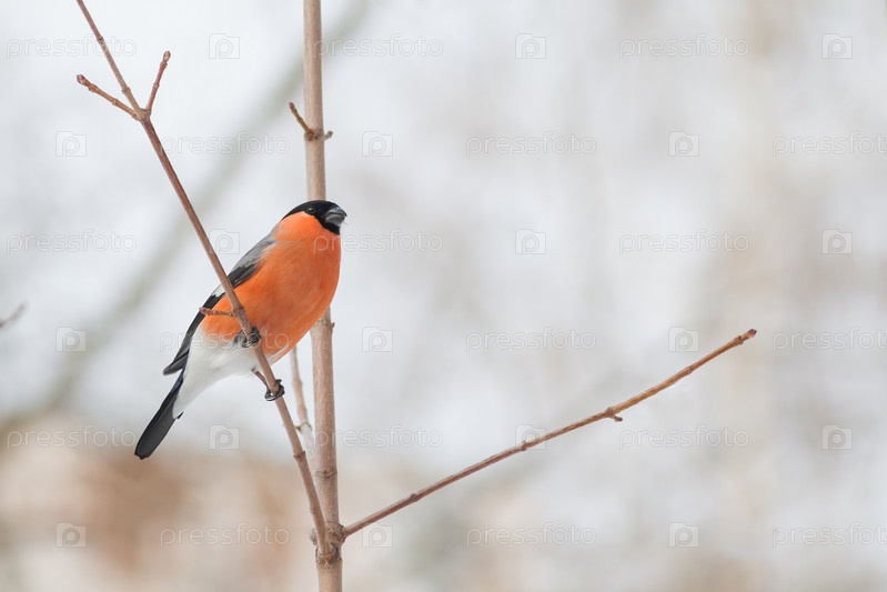 Снегирь на ветке дерева в солнечную погоду