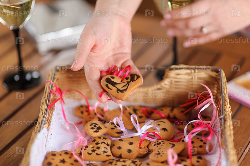 Женщина, держащая печенье в форме сердца