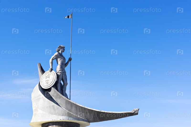 Скульптура воина на лодке