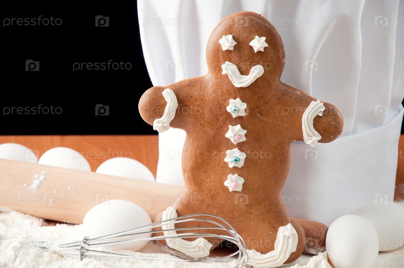 Пряничный человечек, поварской колпак и кулинарные ингредиенты
