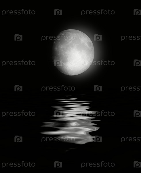 Полная луна в ночном небе отражается в воде