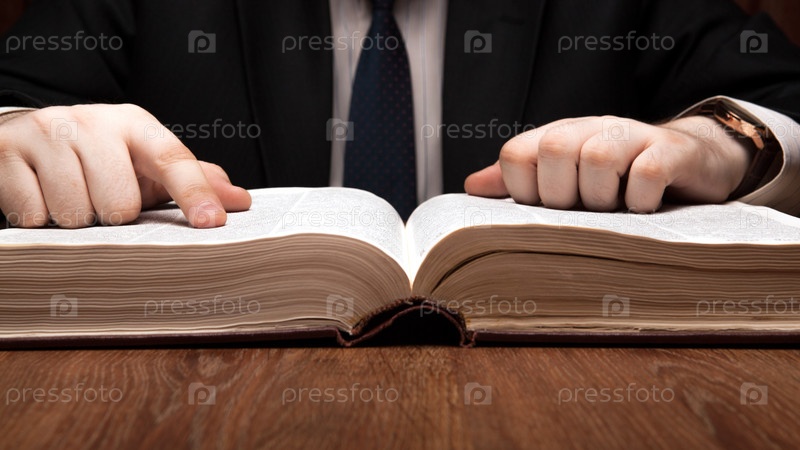 Бизнесмен ищет информацию в словаре