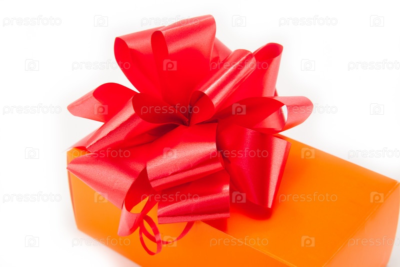 Оранжевая коробка с красным бантом
