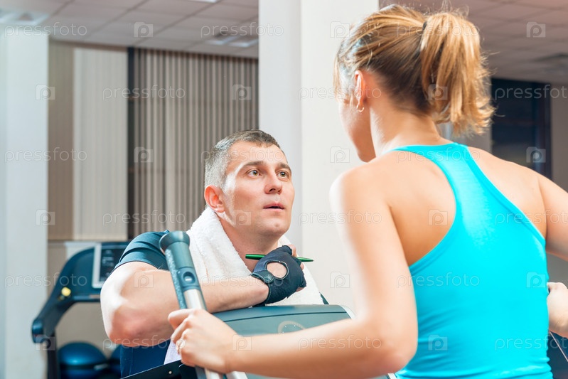 Девушка на тренажере с тренером