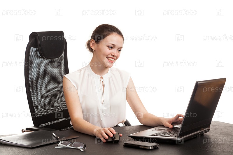 Деловая женщина работает за ноутбуком