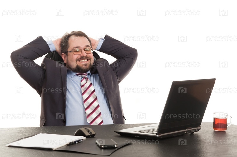 Бизнесмен сидит за офисным столом