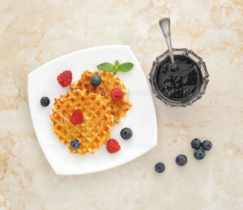 Десерт - бельгийские вафли со свежими ягодами