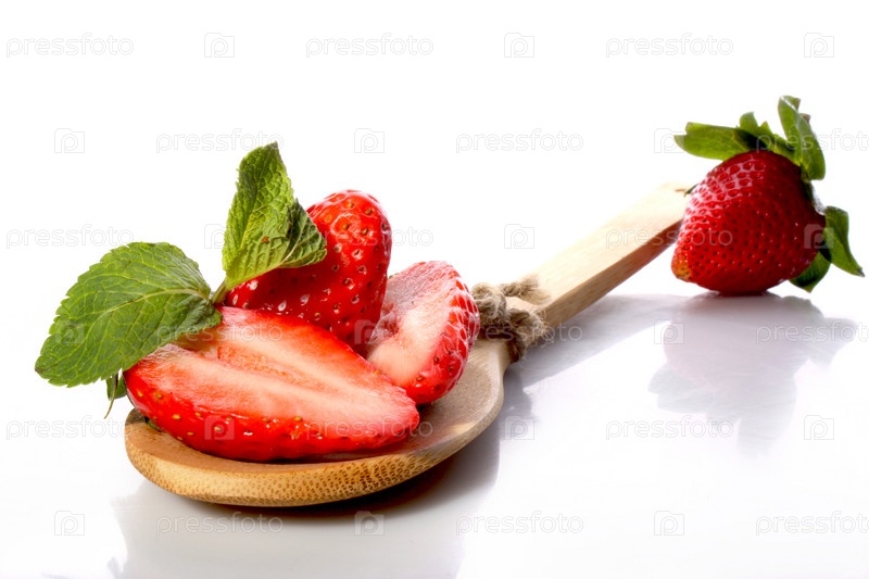 Клубника на деревянной ложке