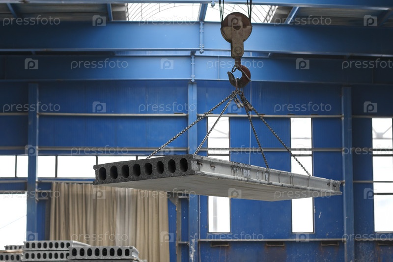 Кран перемещает железобетонные плиты