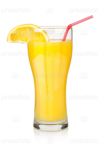 Апельсиновый сок в стакане, изолированный на белом фоне