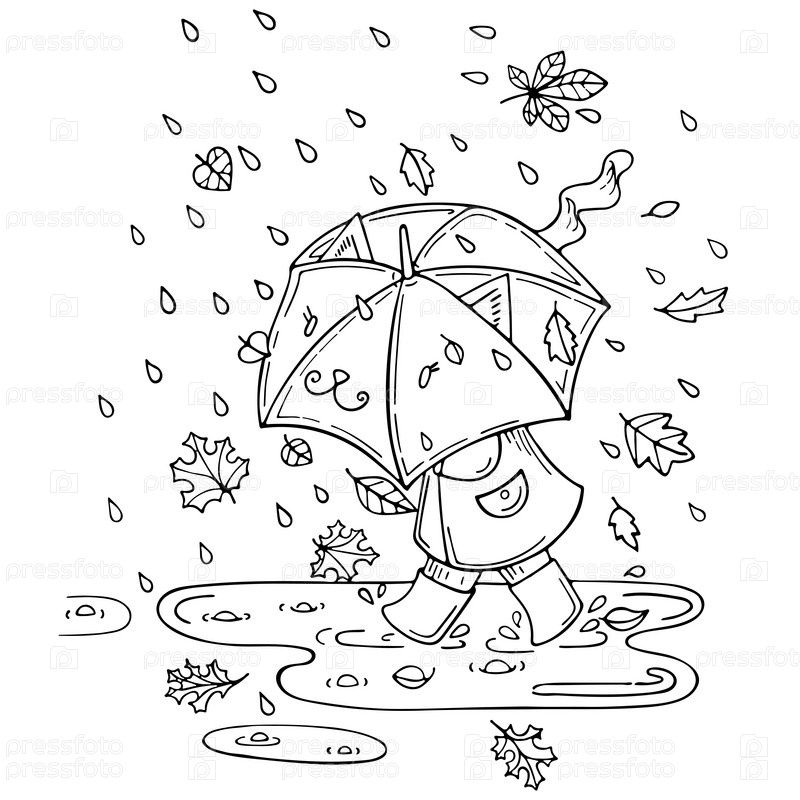 Мальчик с зонтиком под дождем